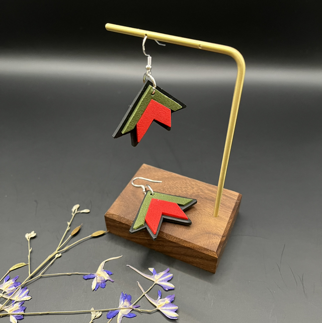 Boucles d’oreilles artisanales modernes, inspirées des symboles et motifs des tapis roumains traditionnels tissés à la main.